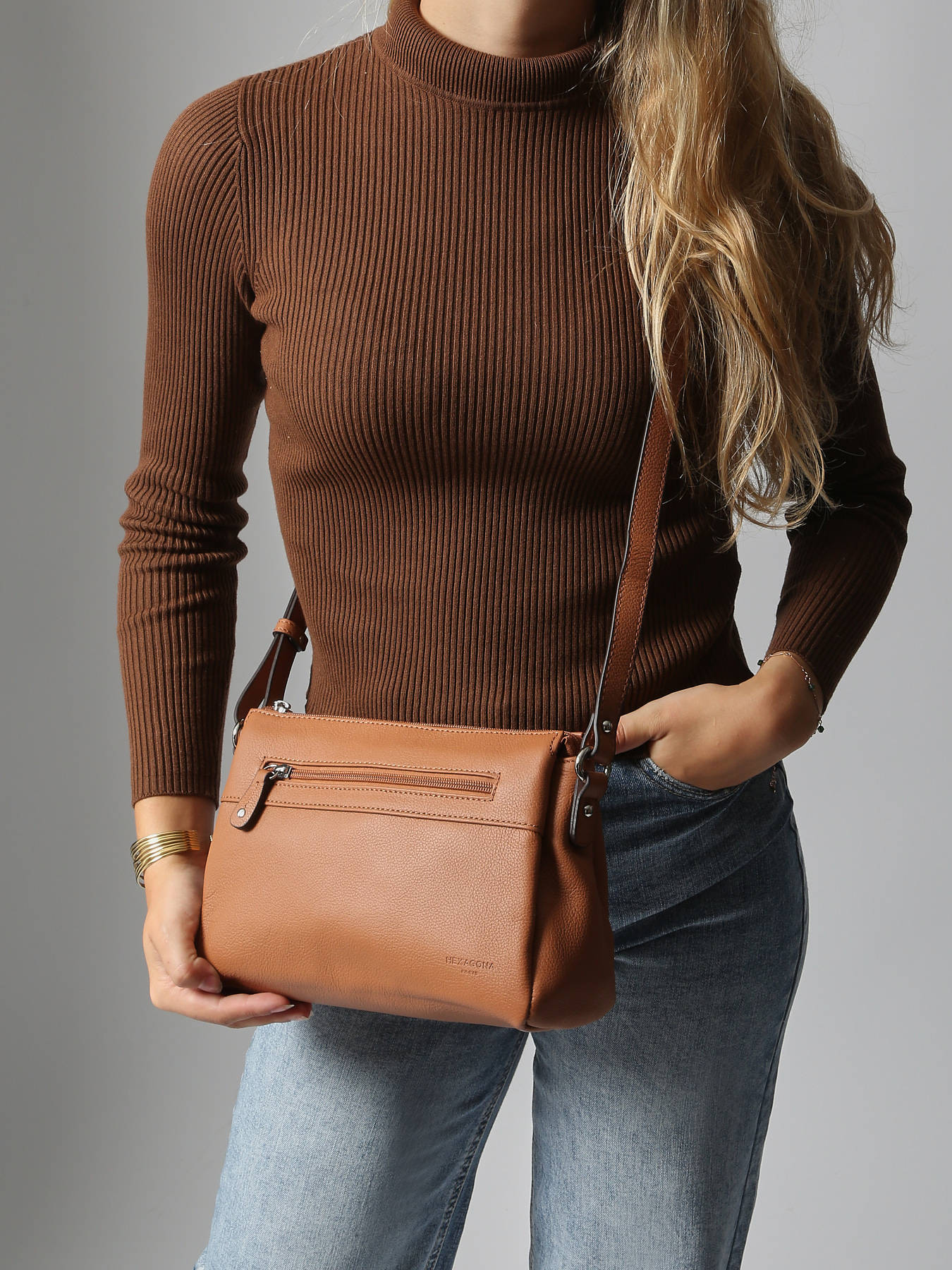 Een modieus ontwerp van het merk Hexagona, geïnspireerd op de toptrends van dit seizoen! Dit stijlvolle accessoire kunt u ofwel gekruist ofwel lang onder de arm dragen.