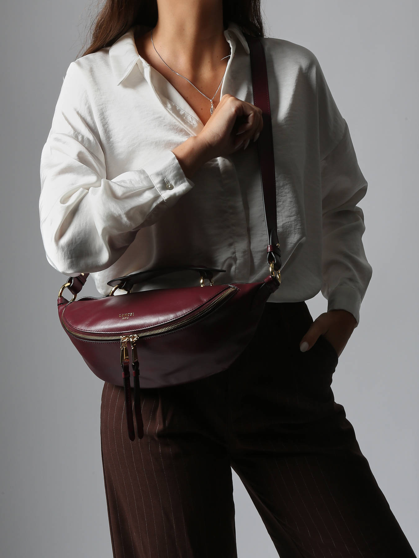 Laat je verleiden door de originele vorm en exceptionele leerkwaliteit van Lancel's Origami tas. Dankzij z'n unieke vorm en brede verstelbare schouderriem kan deze damestas gekruist over de borst of losjes over de schouder gedragen worden: een belt bag en crossbody in één! De tas is gemaakt van glad soepel rundsleer met een matte finish, en werd afgewerkt met zilver- of goudkleurige hardware. De tas opent aan de achterzijde met behulp van een rits, en onthult een mediumgroot interieur. Perfect om jouw dagelijkse essentials veilig in op te bergen! De Origami van Lancel is beschikbaar in 3 formaten, waarbij dit het middenformaat is.