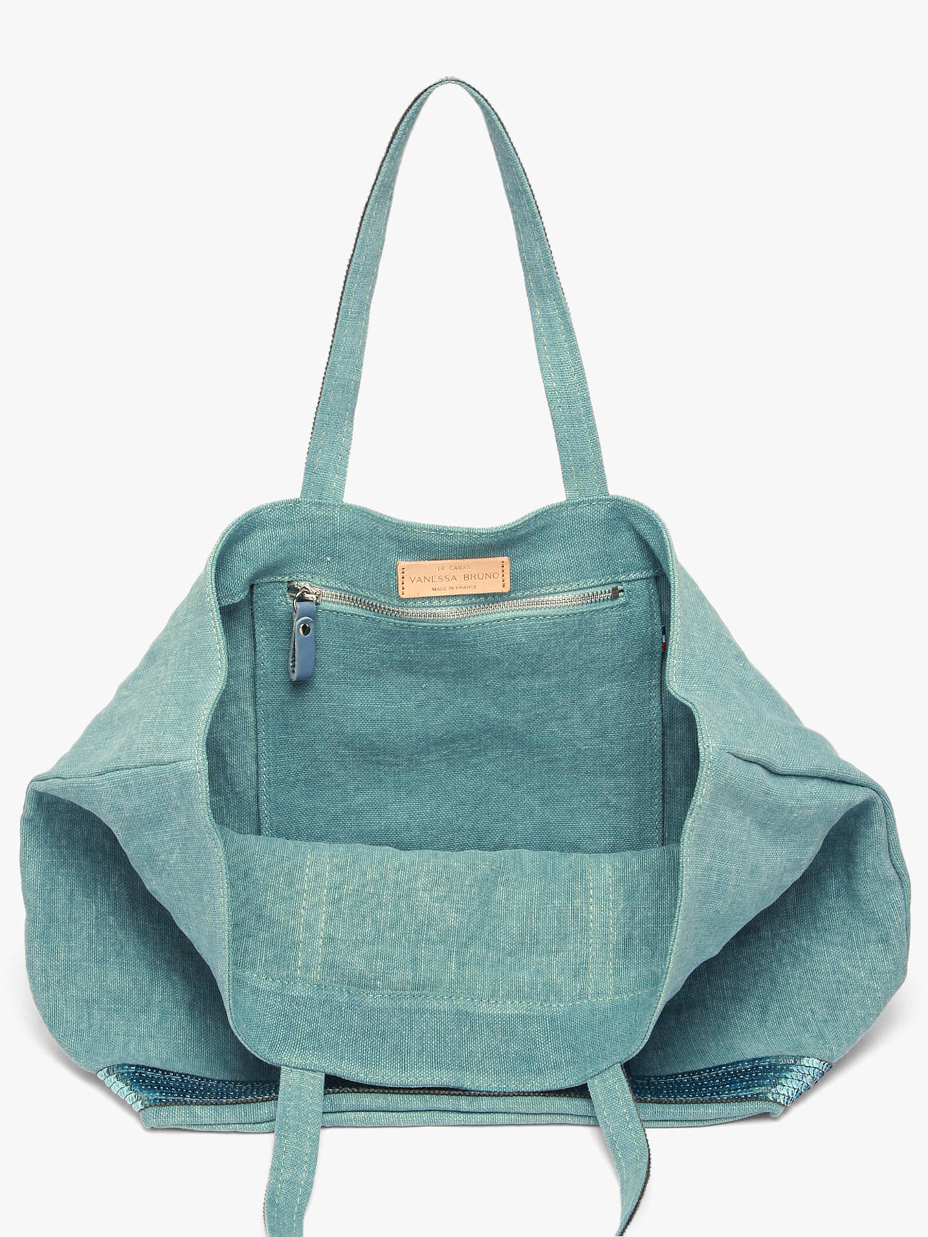 Ontdek hier deze zomerse versie van de iconische Vanessa Bruno tote bag. Deze linnen schoudertas zal de ideale metgezel zijn tijdens drukke dagen of tijdens een leuke wandeling op het strand. Deze Vanessa Bruno schoudertas werd vervaardigd in Frankrijk van eco-verantwoordelijk Belgisch linnen. De 100% natuurlijke vezels staan wereldwijd bekend om hun weerstand. Dit model is perfect voor de hardwerkende vrouw die veel onderweg is. Binnenin werd een ritsvakje toegevoegd voor kleinere essentials. Deze schoudertas kan kort onder de arm of in de hand gedragen worden.