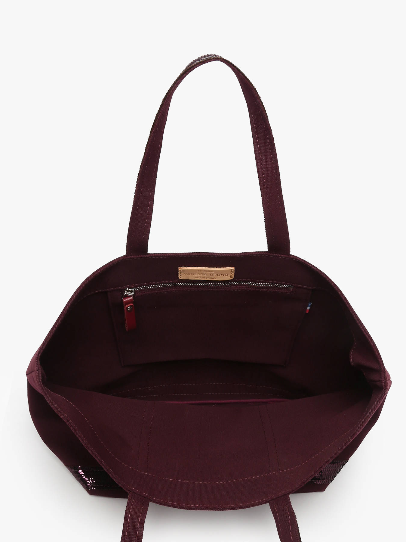 Ontdek hier het nieuwe Le Cabas model van het Franse topmerk Vanessa Bruno, gemaakt van een zeer resistent katoen en afgewerkt met glinsterende pailletten. Dit ""Medium ++"" model kan ook gebruikt worden als schooltas of om te gaan werken. Draag deze Vanessa Bruno tas in de hand of op de schouder, aan jou de keuze! Binnenin is een ritsvakje voorzien voor kleinere essentials. Op het etiket binnenin staat volgende opdruk: ""Le Cabas Vanessa Bruno Made in France"".
