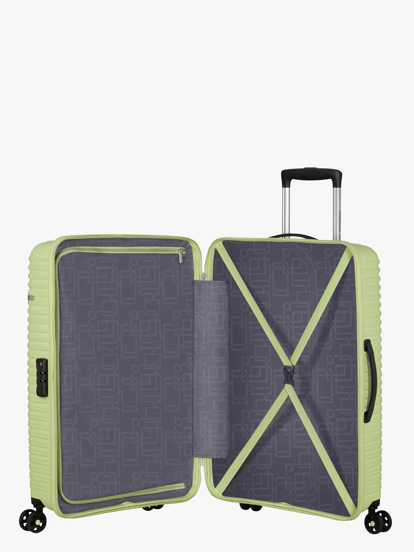 Perfect voor reizen van een week, overtuigt de American Tourister LiftOff koffer van 67 cm met een modern design, praktische functies en hoge stevigheid. Gemaakt van sterk polypropyleen, is deze koffer zowel licht (slechts 3 kg) als duurzaam. Het royale volume van 70 L is uitbreidbaar dankzij een ritsplooi, waardoor je de inhoud gemakkelijk aan je behoeften kunt aanpassen. Voor vlot en comfortabel vervoer is de koffer uitgerust met vier geruisloze wieltjes, een telescopische trekstang met meerdere standen en handgrepen aan de boven- en zijkant. Een geïntegreerd TSA-combinatieslot beschermt je persoonlijke spullen. Binnenin zorgen gekruiste elastische spanbanden en een gevoerde tussenschot voor een optimale organisatie. Met een bijpassende rits en een elegant metalen logo combineert de LiftOff 67 cm stijl, gebruiksgemak en betrouwbaarheid voor al je reizen.