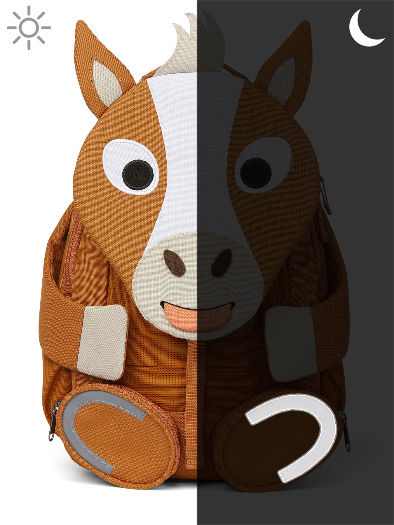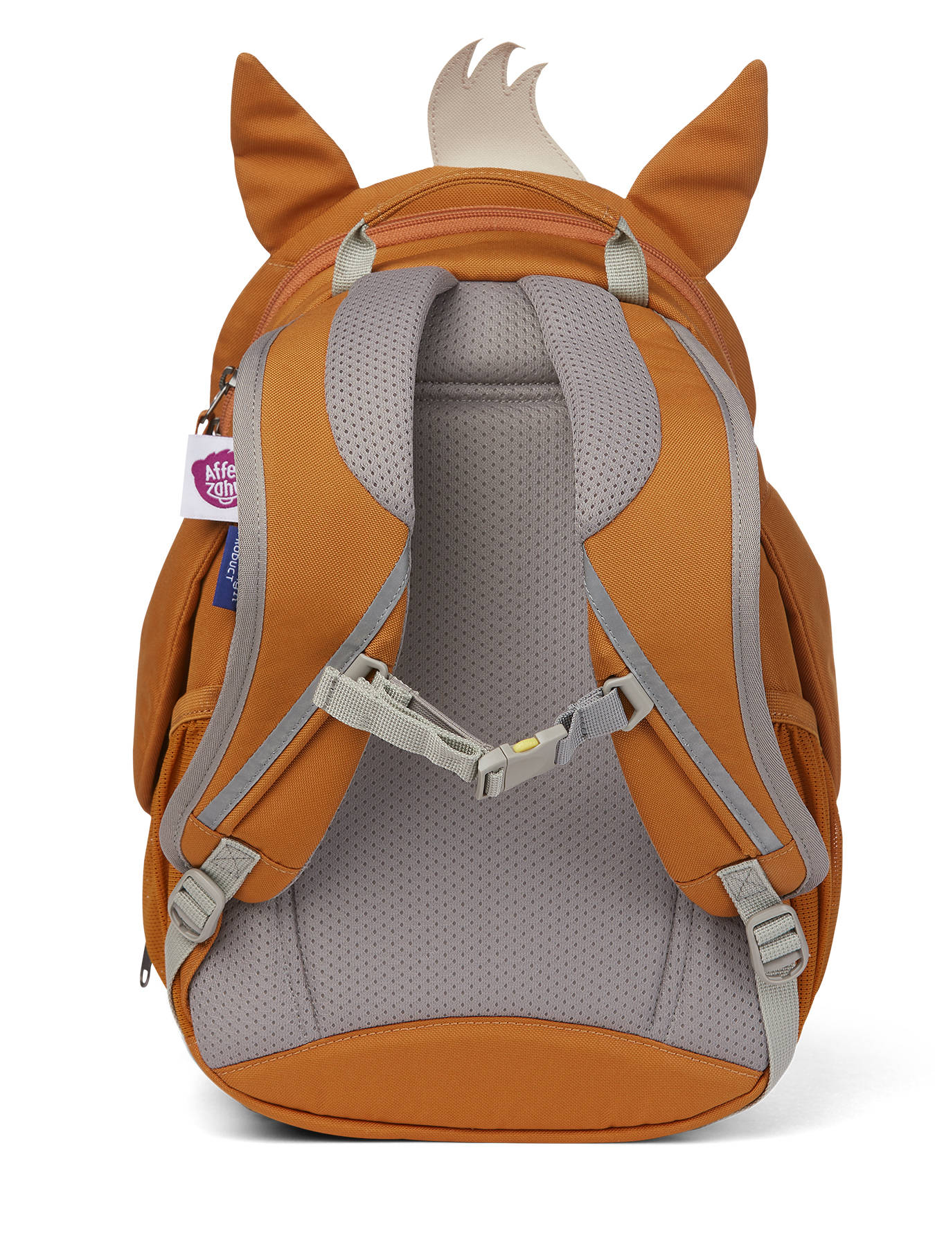 Maak kennis met dit toffe rugzakje van het Duitse merk Affenzahn, de nieuwe beste vriend van uw kleuter! De rugzak is gemaakt uit stevig en waterafstotend materiaal, en heeft tal van voordelen! De pootjes van het diertje hebben een velctro patch, die aan de neus, ogen en oortjes kunnen bevestigd worden. Laten we verstoppertje spelen! Ook de tong is uitrekbaar, en onthult een handig naamlabel. Het hoofdcompartiment van dit rugzakje sluit met rits, en kan makkelijk een schriftje of lunchbox bevatten. Vooraan en aan weerszijden zijn extra vakjes uit mesh voorzien, om kleine spulletjes in te stoppen. Ook de pootjes onthullen twee kleine ritsvakjes! De verstelbare schouderbandjes en rugzijde zijn gewatteerd, voor optimaal draagcomfort. De rugzak is ook voorzien van reflectoren, zodat uw kleuter zich veilig in het verkeer kan begeven. Ook perfect als lunchtas!