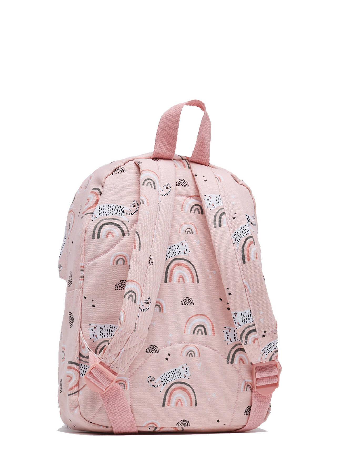 Lieve rugzakjes voor de eerste ontdekkingen van je kind. De Kidzroom rugzak uit de Mini collectie is perfect voor kleine meisjes om mee te nemen naar school, een dagje uit of tijdens een logeerpartijtje bij opa en oma. Deze Kidzroom rugzak is roze en heeft een lieve print met poezen en regenbogen. De tas heeft een ruim hoofdvak waar je schoolspullen, een broodtrommel en een drinkbeker in kwijt kunt. De schouderbanden zijn in lengte verstelbaar en de lus maakt het makkelijk om de tas op te hangen.