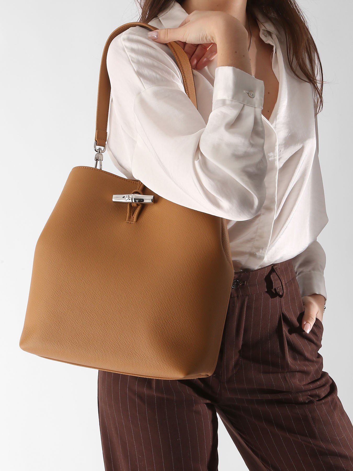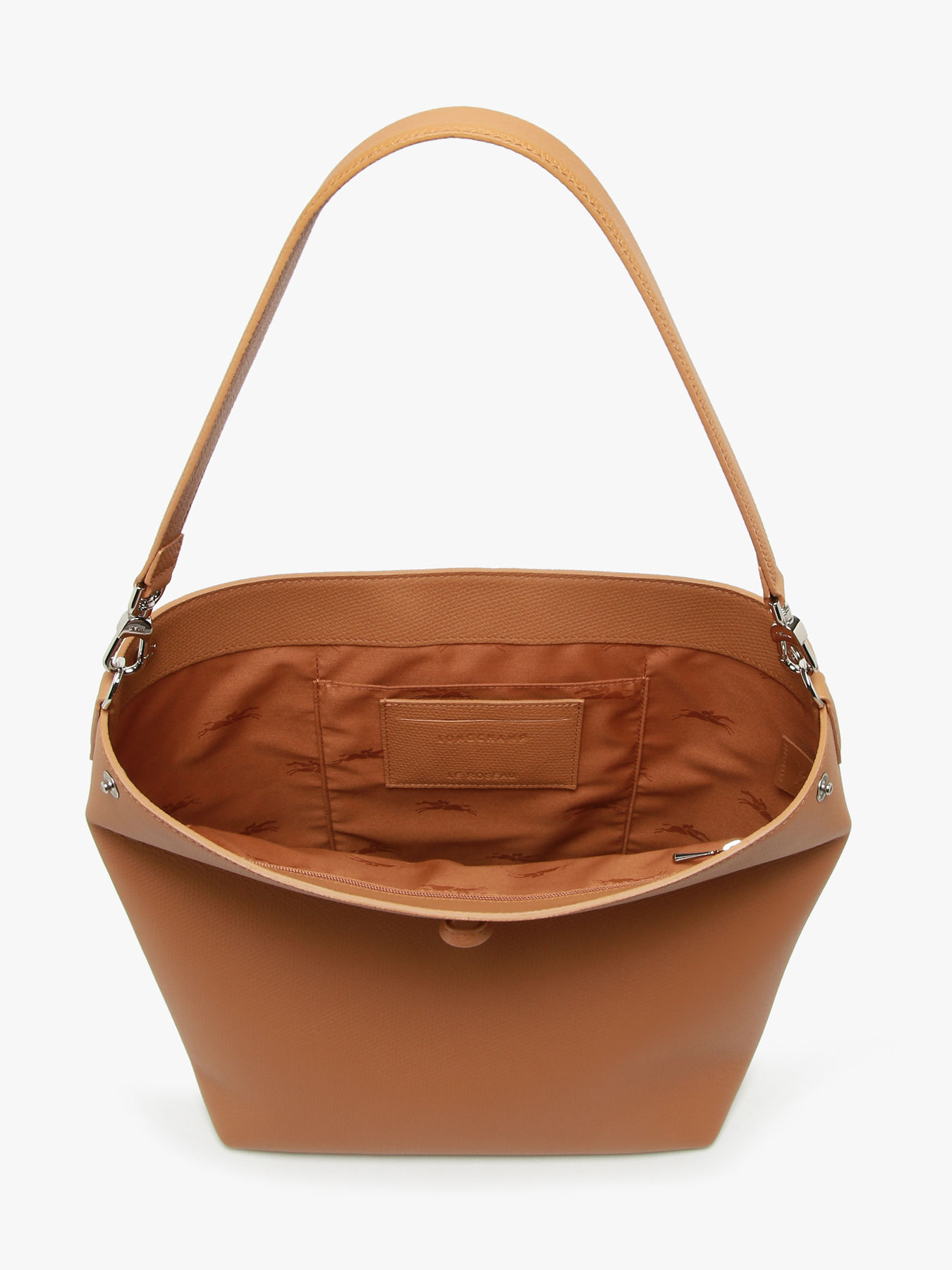 De nieuwe Le Roseau lijn van Longchamp straalt een creatieve en functionele elegantie uit. De herwerkte lijn combineert comfort en soepelheid, dankzij het generfde rundleer. Deze Le Roseau schoudertas is lichtgewicht en wordt versterkt door het tijdloze, vrouwelijke en prachtig chique ontwerp en straalt met het iconische bamboedetail. Binnenin is een ruim interieur voorzien, met handige opbergvakjes om kleine spulletjes afzonderlijk in op te bergen. Het hengsel heeft een hoogte van 25 cm, en kunt u dus makkelijk in de hand of losjes over de schouder dragen.